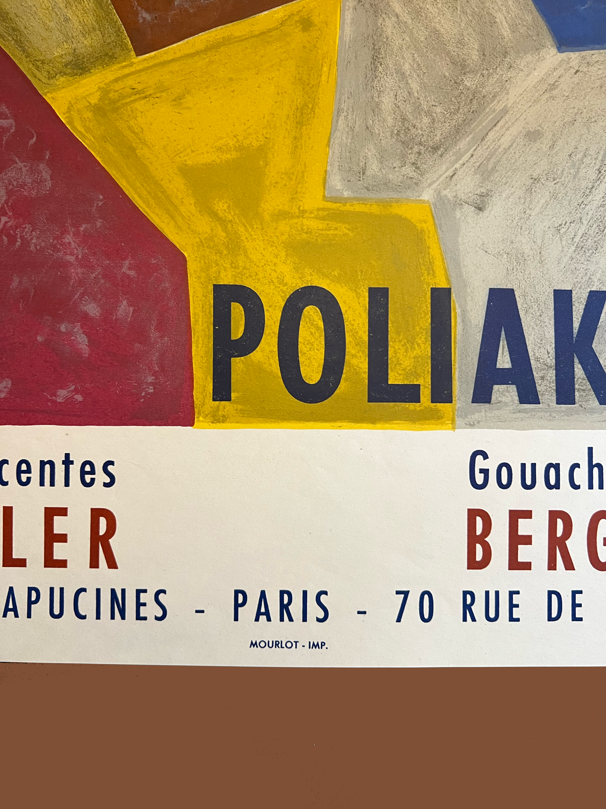 This rare and beautiful original lithographic poster in 10 colors was created for two exhibitions by Serge Poliakoff at the Knoedler Gallery and at the Berggruen Gallery in Paris in 1959. Both galleries were located on the Rue des Capucines.